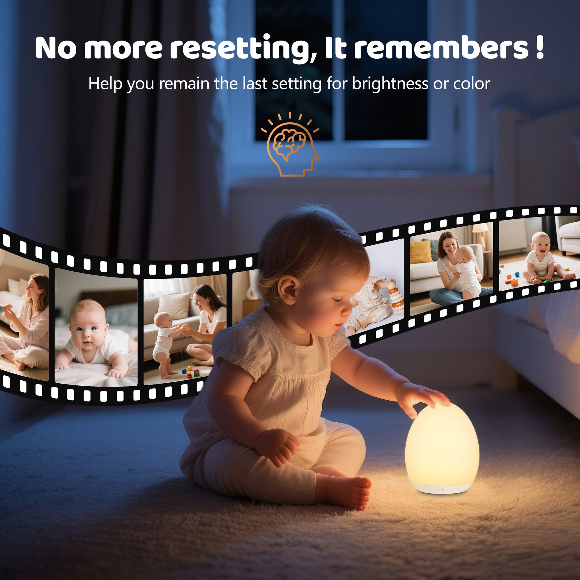 - Attractive LED Colors: In Color mode, the egg night light will auto-cycle through 8 velvety colors; touch the top for 0. 5 seconds to fix your favorite color. Memory function helps you remain the last setting.